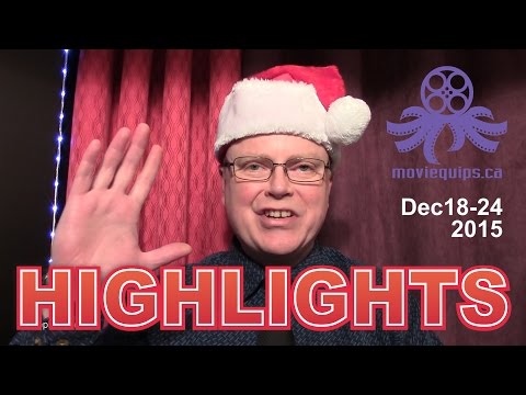 This week's moviequips video highlights the movies ALVIN AND THE CHIPMUNKS: THE ROAD CHIP, CAROL, DILWALE, HE NEVER DIED, MOJIN: THE LOST LEGEND, SISTERS, and STAR WARS: THE FORCE AWAKENS, all screening in Ottawa, Canada from December 18th to the 24th. Check it out, thanks for your support! Cheers